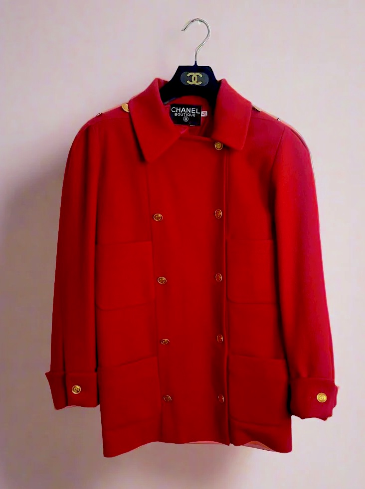 Chanel Vintage 90s Military Inspired Double Breasted Cashmere Jacket