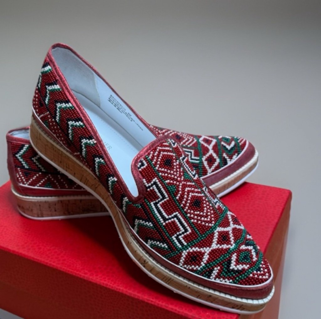 Donald J Pliner Women’s Bray Flat, Red Beaded Metallic. Size 8
